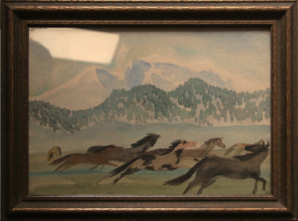 Watercolor, 9-3/4 x 13-1/2, in glassed Milstein frame, 12-1/2 x 16-5/8. Signed. Reflection is photo artifact.