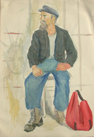 Watercolor, 19-1/4 x 25-1/2. Exceptional size. Minor staining and wrinkling.