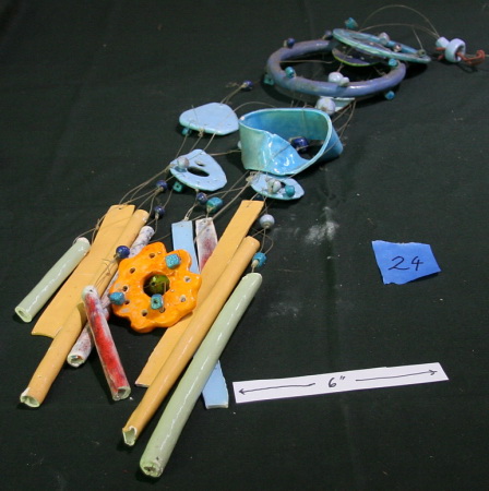 Ceramic windbell, by Dorothy. Hangs more than 3' tall. Appears intact and undamaged. Sounds great.