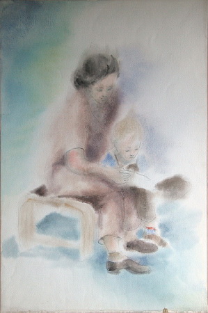 Watercolor, 14-3/4 x 22; Sister Kathryn & newphew Jay, about 1941