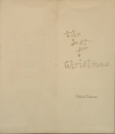 'Pixie Prints' silk-screened greeting card, 4 x 9-1/4 (interior; see A-4A for front and back). Custom-printed for Mabel Cannon. Dorothy's mother.
